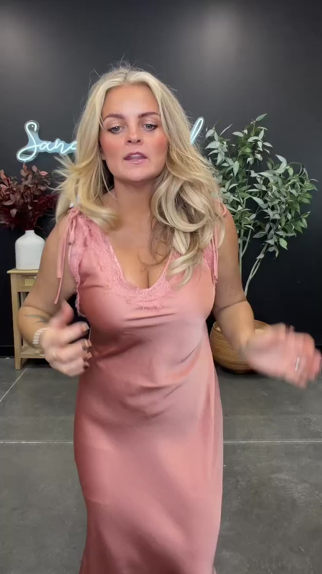 This dreamy slip dress was made for your easy elegance days. Designed with delicate lace trim at the neckline and adjustable tie straps, it offers the perfect mix of romance and comfort. The lightweight, silky fabric drapes beautifully, creating a flattering flowy silhouette that moves with you. Whether you’re dressing it up with heels or keeping it casual with a cozy cardigan and flats, this piece is made to make you feel instantly put together.