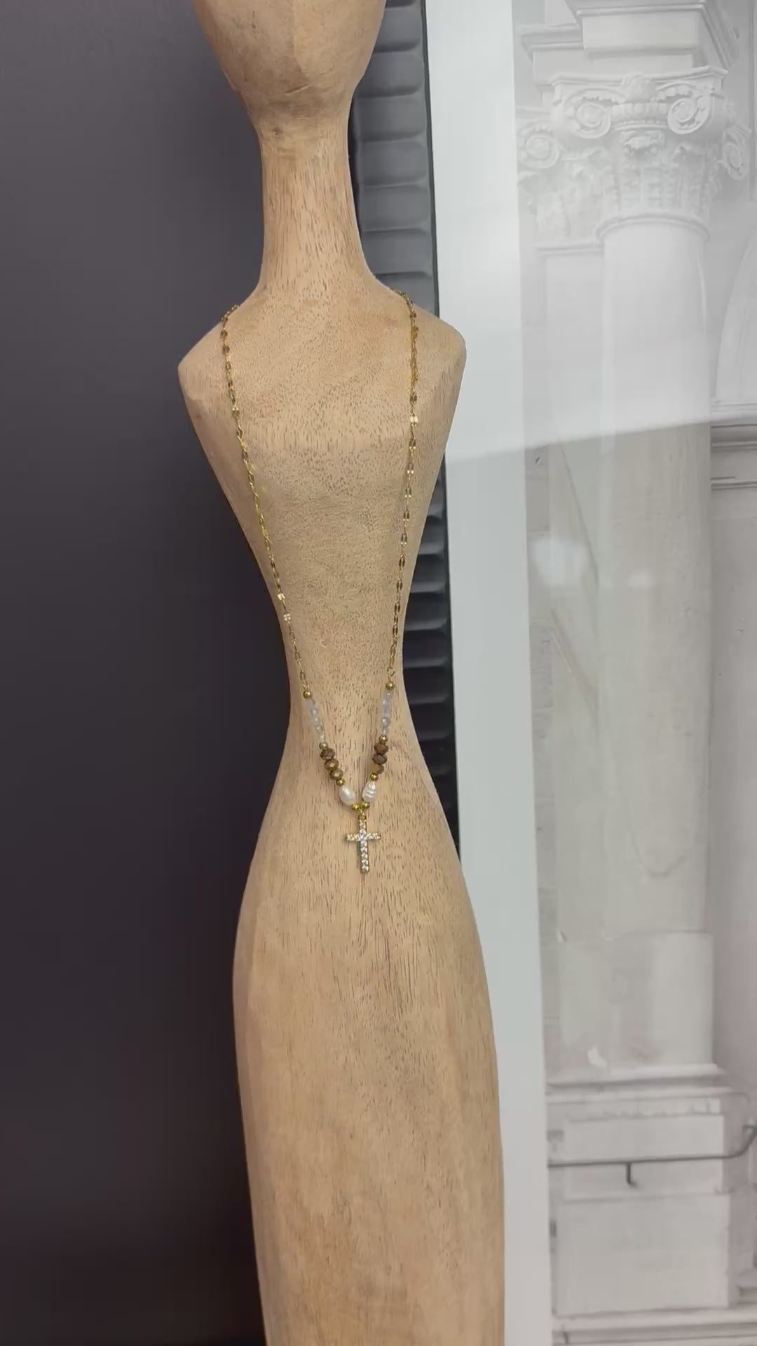 - 18k Gold Cross Necklace with beads and pearls.