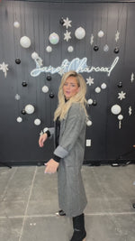 - Longline Coat with Patterned Fabric and Functional Buttons, Front Pockets and Cuffed Strap.