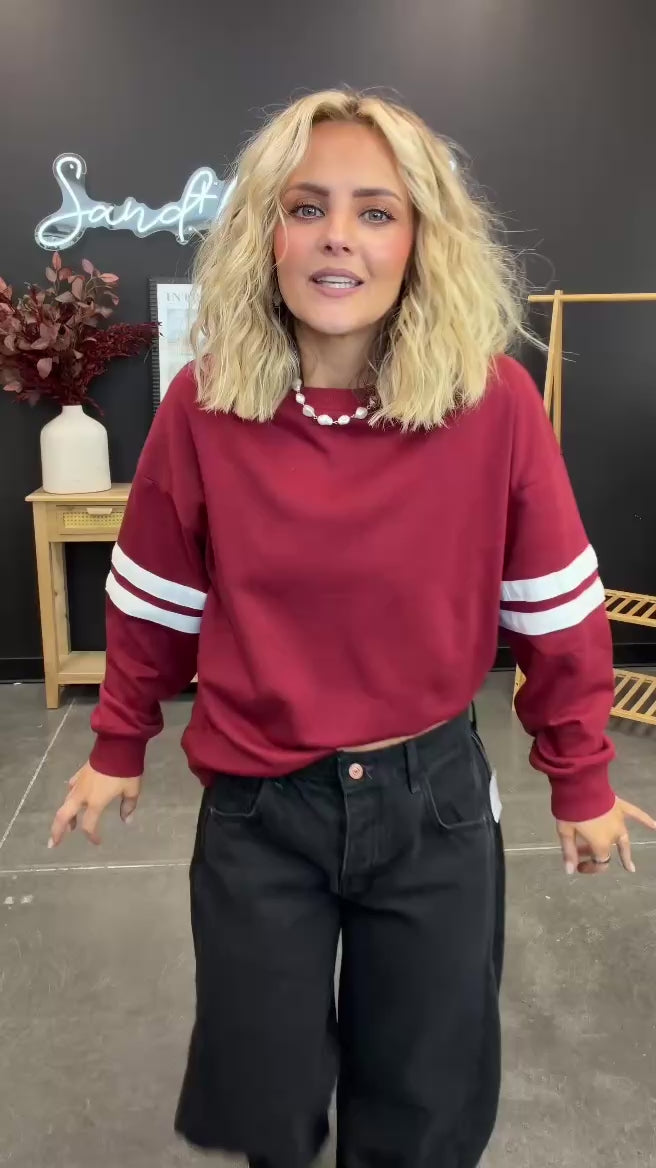 This one is giving effortless sport girl in the best way. Our Varsity Striped Drop Shoulder Oversized Sweatshirt is the perfect blend of cozy and sporty, with bold varsity sleeve stripes that instantly elevate your everyday look. The relaxed drop shoulder fit makes it feel slouchy, while the soft sweatshirt material keeps it comfy enough to live in.