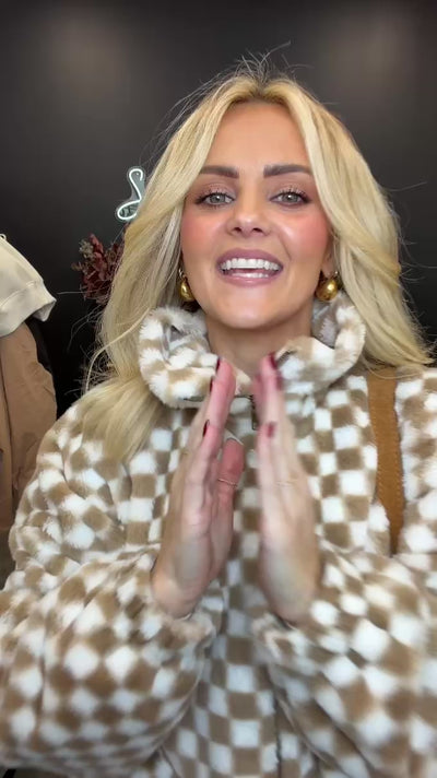 This fuzzy checker fleece is the layer you’ll keep reaching for when comfort is non-negotiable. Designed with an ultra-soft, fluffy exterior and an easy zip-front closure, it delivers warmth without feeling bulky. The relaxed fit is finished with a cinchable hem so you can wear it loose and effortless or snug it in for extra coziness. Equal parts cute and functional, this one’s perfect for crisp mornings, casual errands, or slow days spent outdoors.