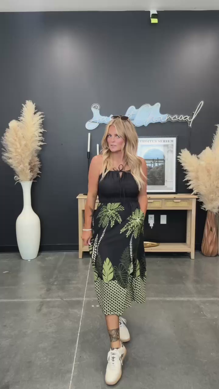 Sun Drenched Tunnel Shoulder Tie Midi Dress